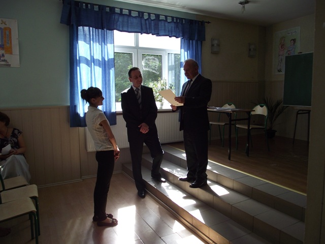 Rozdanie świadectw w klasach Iw, IIw, wychowawca Pan inż. Jacek Nesler.