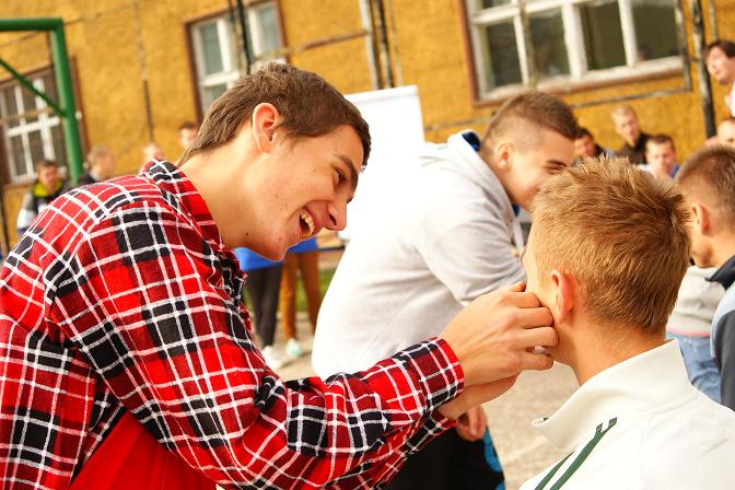 Wzięli udział w wielu konkurencjach m.in. taniec na gazecie, rysowanie karykatury wychowawcy, tor przeszkód, jedzenie jabłka bez użycia rąk. Najwięcej emocji wzbudziło odśpiewanie wylosowanej piosenki, a raczej jej „wymiałczenie”, jak i przeciąganie liny. Zwycięska drużyna mogła zmierzyć się z organizatorami imprezy, z klasą IV. Wszystkim zadaniom towarzyszyło wiele śmiechu i hałasu, a pierwszoklasiści z pewnością długo jej nie zapomną. Uwieńczeniem otrzęsin był wspólny grill w gronie pierwszaków z wychowawcami, przedstawicieli klas IV i samorządu szkolnego.